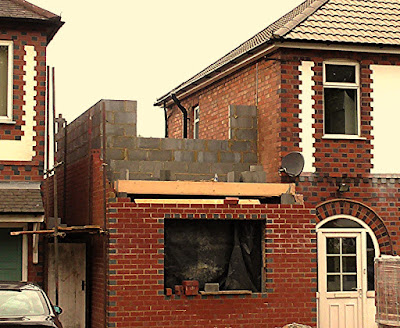 January applies for planning for two storey side extension, single back extension and front porch. This would take it from 3 beds to 5 beds! Planners refuse but give permission on second application on scaled down side extension with only an a increase to 4 beds. He started 'official' work in April just after receiving permission however had dug front porch foundations before Christmas along with making the 'sewer' holes out the back into bigger foundation shaped holes!